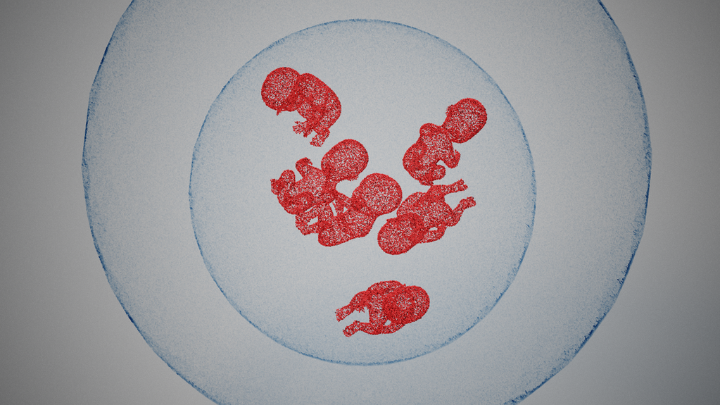 Work done via voxel to visually create a virus in the fetus, creating the problem of greed through blood.